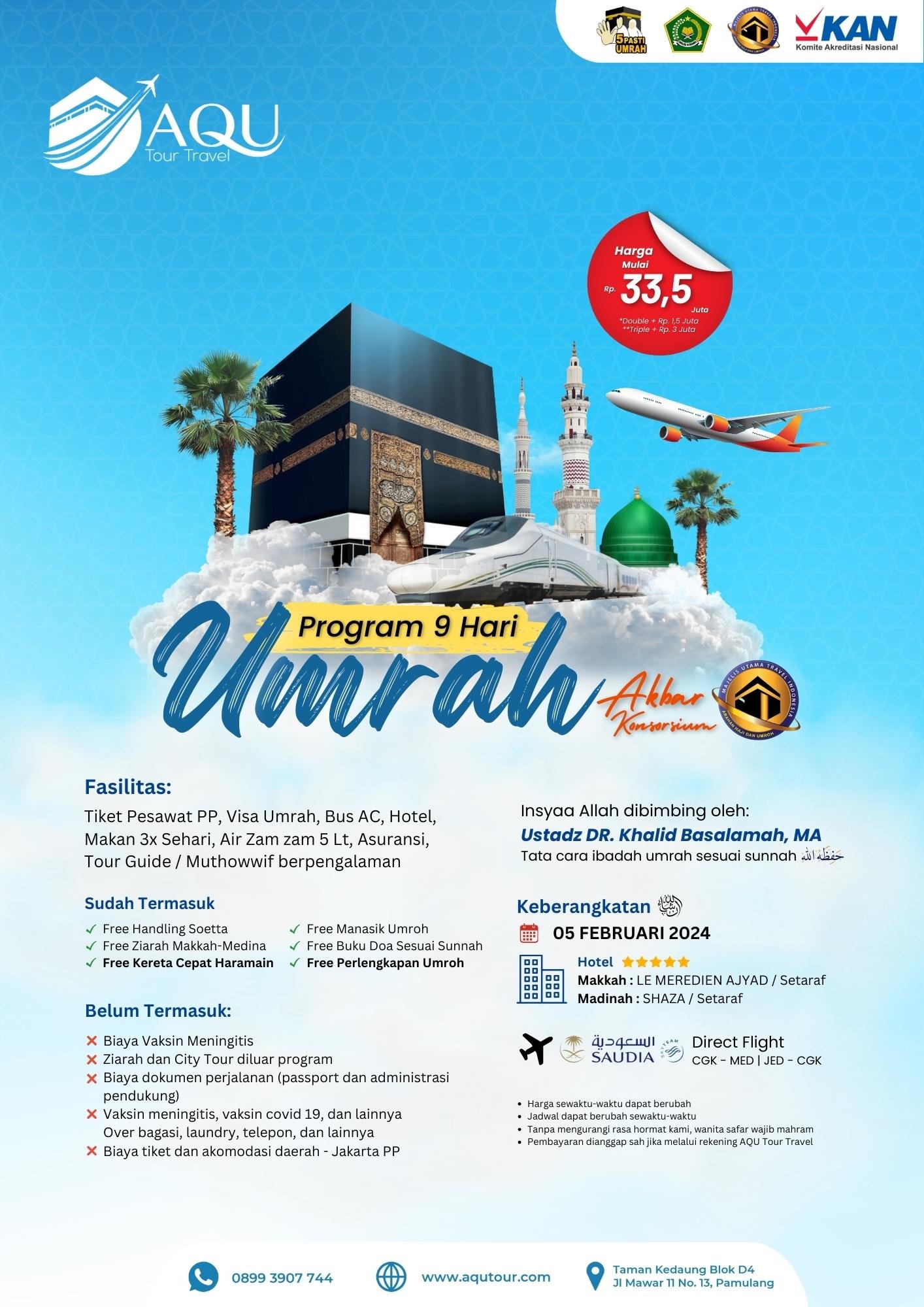 Bergabunglah dengan kami dalam perjalanan spiritual yang tak terlupakan! Dapatkan pengalaman unik dengan Paket Umroh Akbar Bersama Ustadz Dr. Khalid Basalamah, LC, MA., dari AQU Tour & Travel bekerjasama dengan Asosiasi Mutiara Haji.
